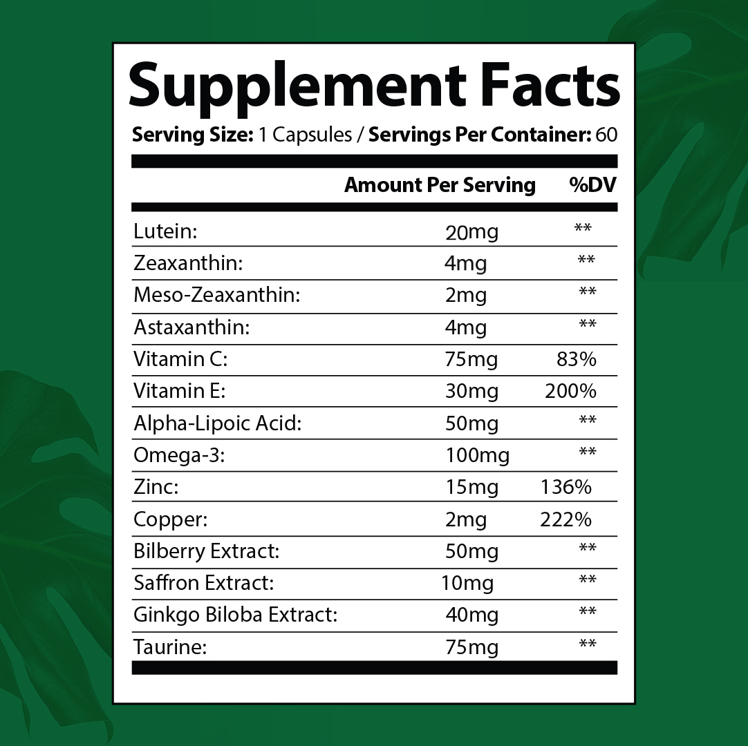 Complete protection.Most eye supplements only protect 60% of your vision. EverVision includes all 3 critical carotenoids (Lutein, Zeaxanthin, AND Meso-Zeaxanthin) plus 11 other essential nutrients at clinical-strength doses. We also include Harvard-proven vision enhancers like Saffron Extract that most brands skip. It's the difference between an incomplete formula and one that actually works.